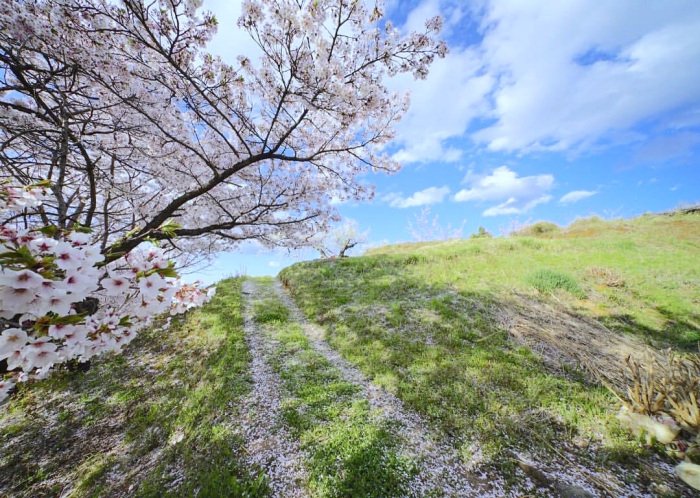 桜のおわりにとっておきの秘めたる径に‥とバイクで行ってみたら新しい道の造成工事で 跡形もなかった人は老いても風景は‥ と思ったが 春ならばの愁い 諸行無常 この径を撮っておいてよかった