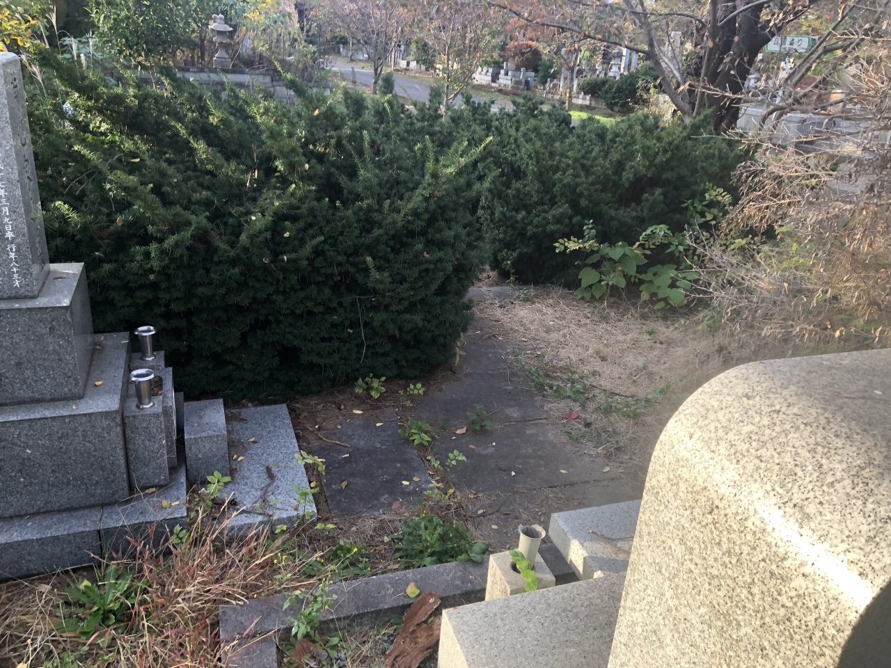 そのお墓が、墓石こそ堂々としてますが、なんだか荒れた感じ。大きな赤松は枯れているし、そのしたの樹木もかれている これはないでしょう。